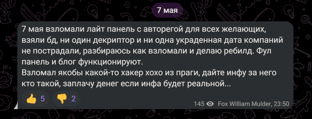 2025 年 5 月 8 日晚,LockBit 基础设施再次被成功攻破(攻击的最后部分是公开演示)。